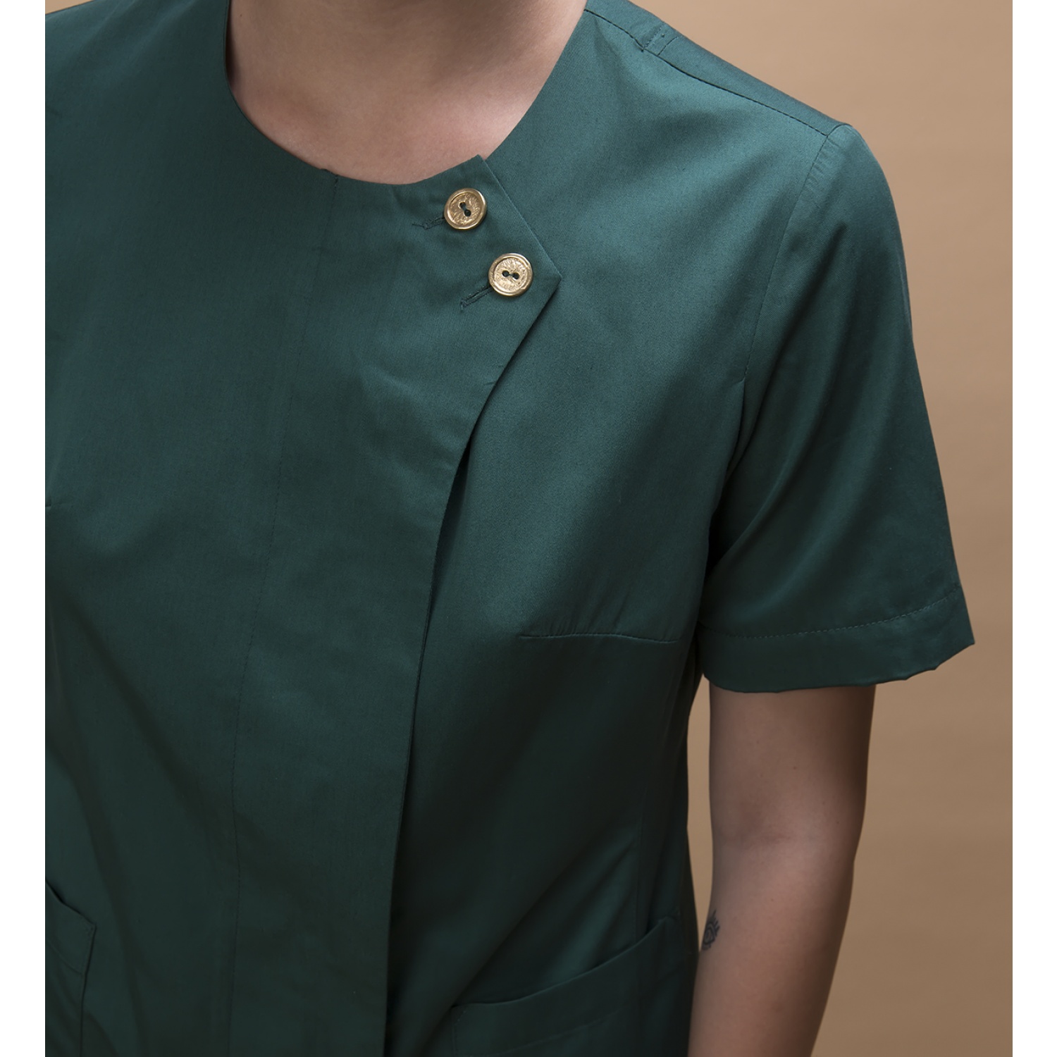 Γυναικείο τζάκετ σε στενή γραμμή με κοντά μανίκια. Κρυφή λοξή πατιλέτα με φερμουάρ, δύο άνετες μπροστινές τσέπες.